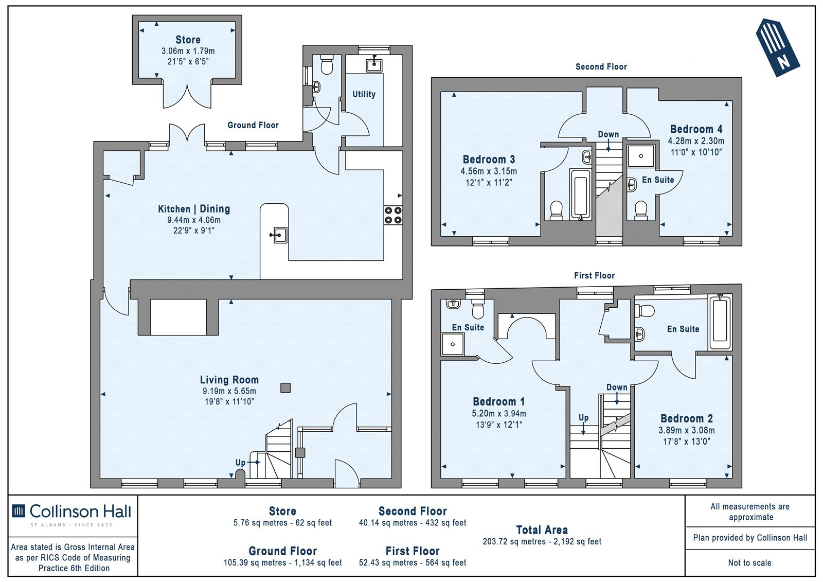 The top floor comprises two further bedrooms, both generously sized and each enjoying private en-suite facilities.